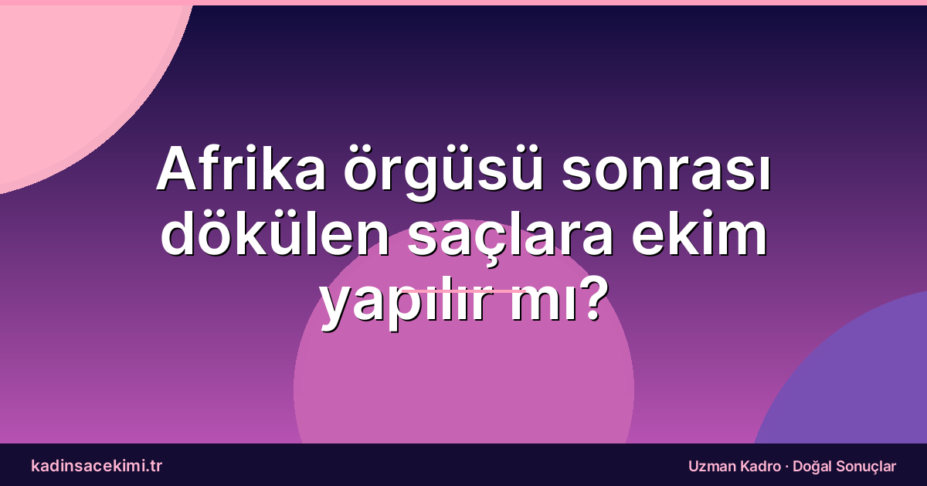 Afrika örgüsü sonrası dökülen saçlara ekim yapılır mı? Saç dökülmesi, birçok kadın için zor bir süreçtir. Özellikle de…